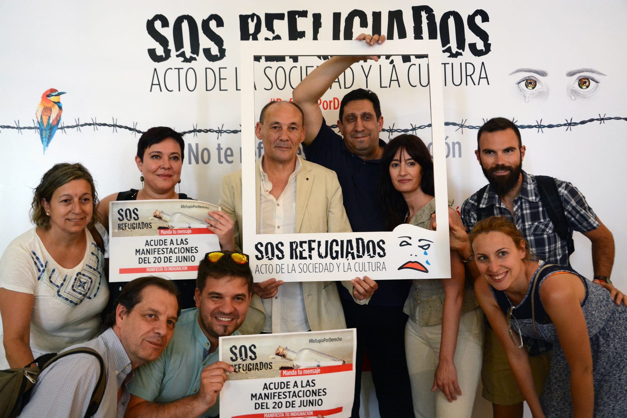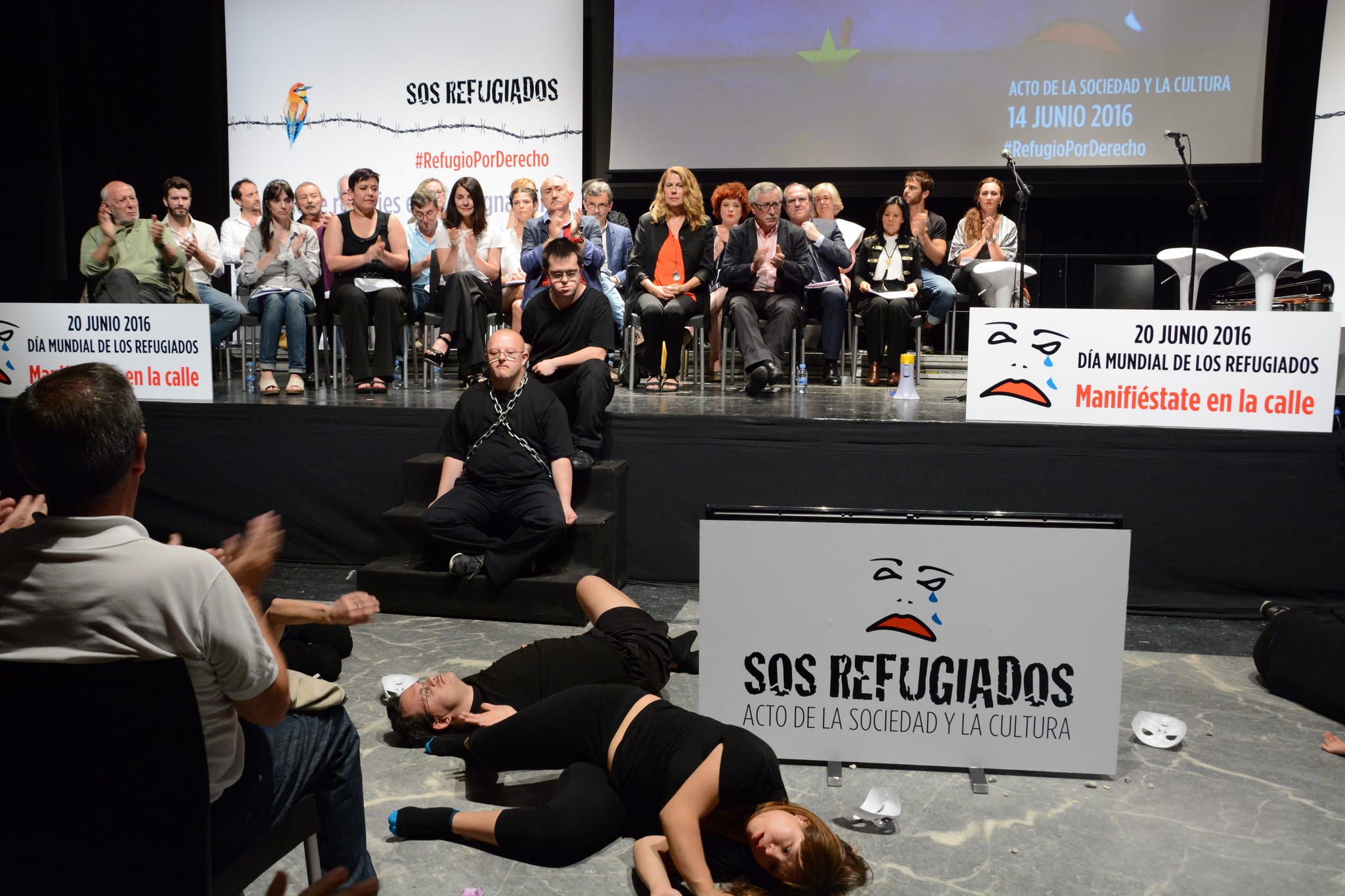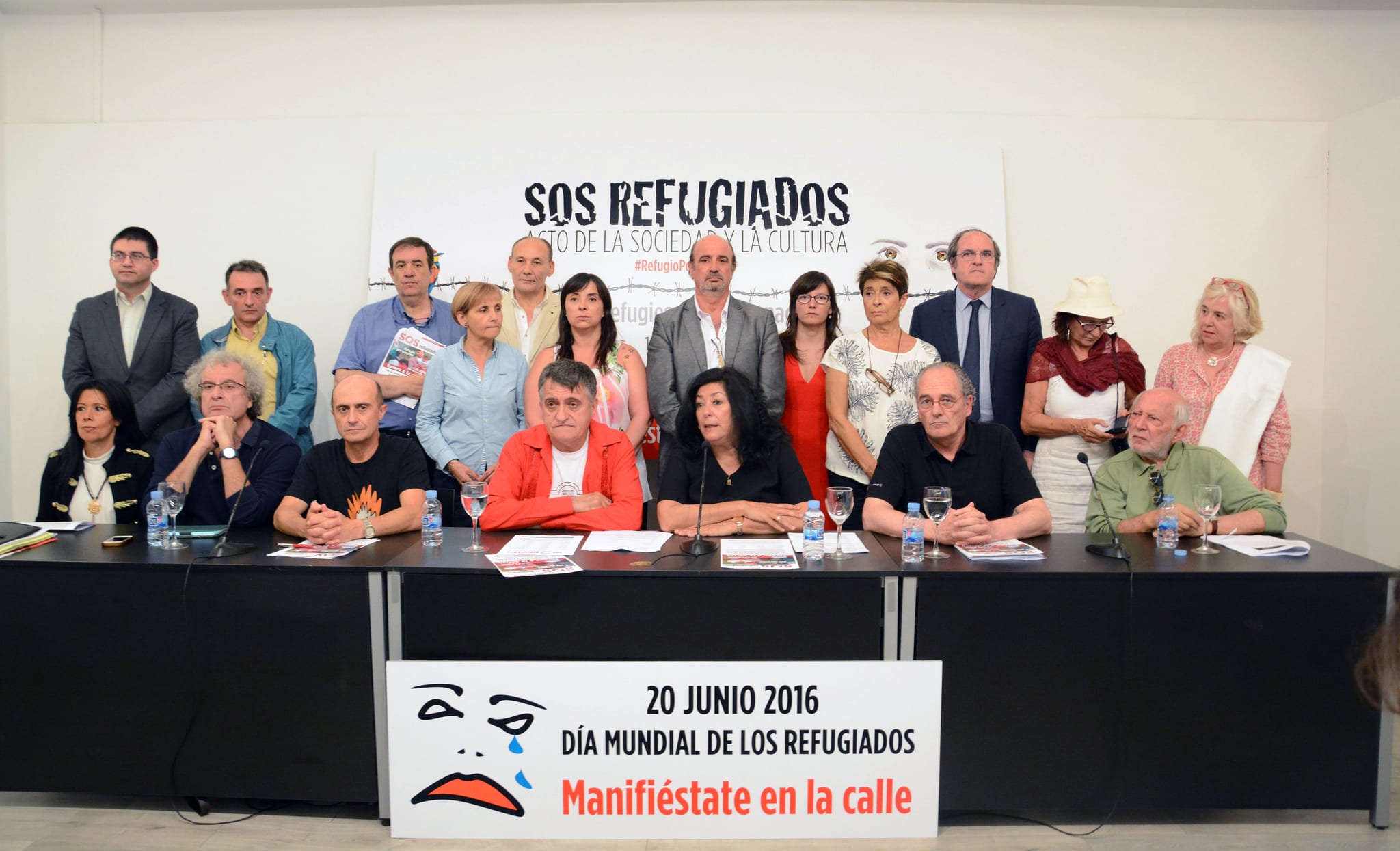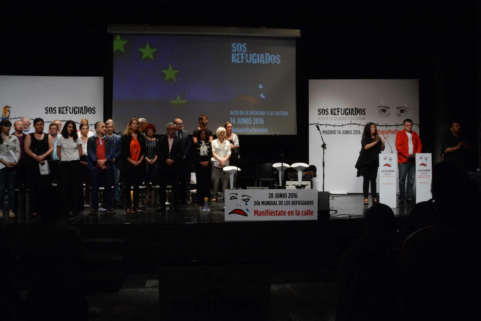 En el acto, conducido por el Gran Wyoming y Almudena Grandes, y en el que participaron Benjamín Prado, Nativel Preciado, José María Calleja, Jesús Maraña, Rosa León, Ángel Gabilondo, Cristina del Valle y Álvaro de Luna, entre otros, se hizo un llamamiento a la participación en la manifestación convocada en Madrid el próximo 20 de junio, Día Mundial del Refugiado, a las 19:00 horas, de Ópera a Sol. En el resto del Estado se convocarán manifestaciones.